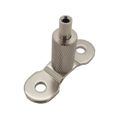 This compact TECNI®Grip plate clamp has a polished finish and can be used with all 7x7 and 7x19 construction cables from 1.25mm-2mm diameter. Our in-house testing has established a working load of 10kg perfect for a light fitting or medium size picture. It is also perfect for display & suspension applications such as shop fittings and shelving.