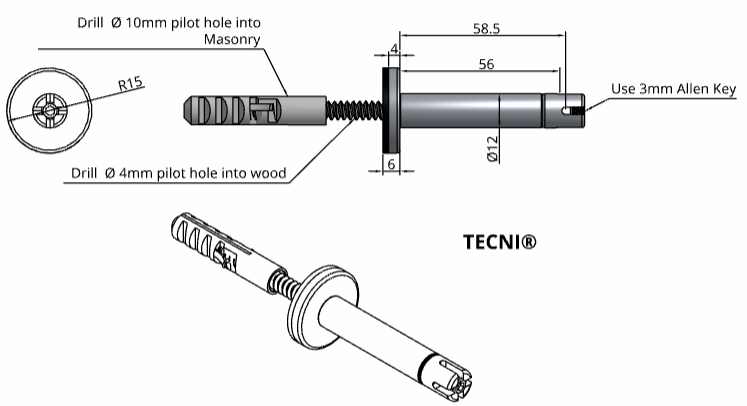 If installing into masonry, brick and stone, use 5mm Masonry Drill Bit for the concrete anchor bolt. The concrete anchor screw can also be used to fix into wood.
