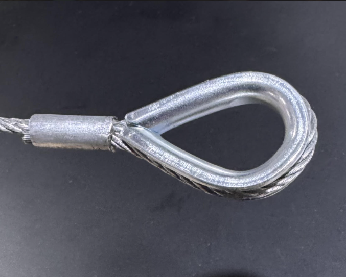 The thimble itself does not hold the rope in place however are secured by using a ferrule or wire rope grips. Aluminium ferrules are recommended to use with electro plated/galvanised thimbles.